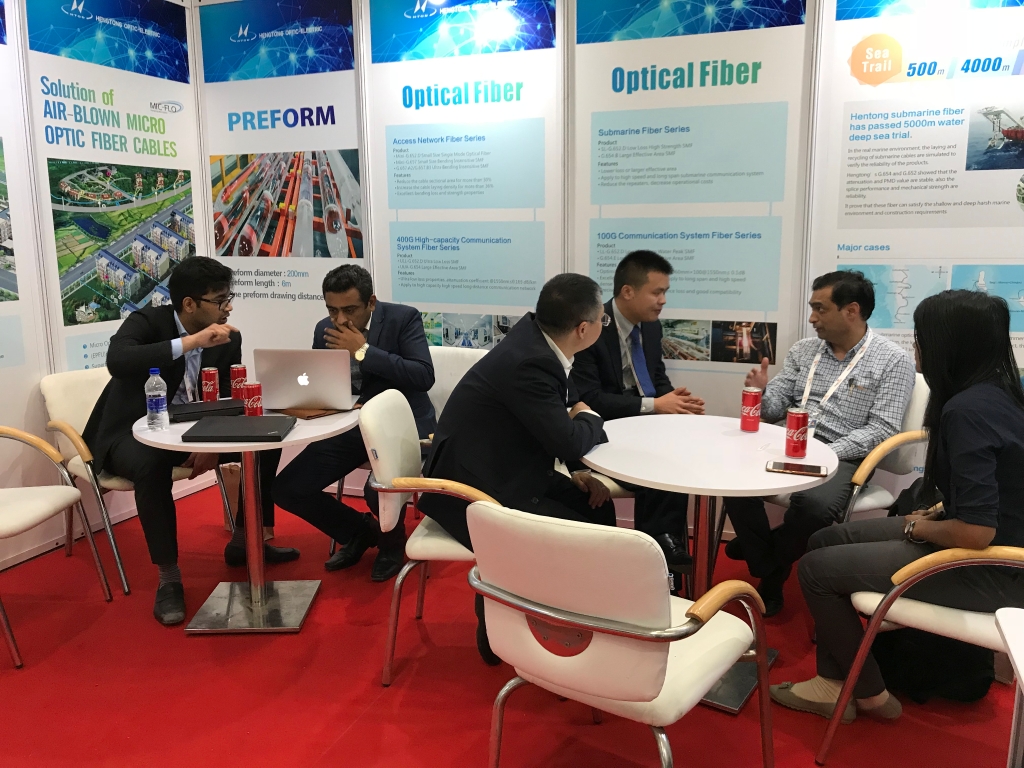 Looking for the global market and stepping out in accordance with the Belt and Road, Hengtong has accelerated its international outlay recently. In 2007, Hengtong formally stepped into the Indian market; in December 2017, it further expanded its South Asia market by investing in building the optical fiber cable factory. And in 2018 Indian Telecommunication Exhibition, functioning as the first show after the cable factory building, well-prepared Hengtong attracted eyes of a large number of professional clients and receive positive remarks from them, with its products including 400G big capacity optical fiber, access network optical fiber, Ocean communication optical fiber, FTTx soft access and Air-Blown Micro Cables and a series top-notch solutions. What is worth to pay attention is a good many local influential and powerful leaders in telecommunications operators come to the exhibition to conduct the face-to-face and thorough communication as well as show the cooperation intention, looking forward to setting up the long-term and friendly cooperation in the fields of fiber-optic networks and FTTx.